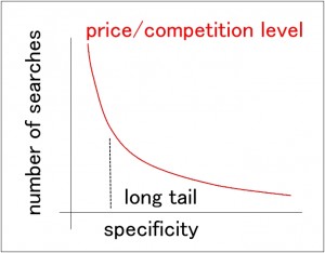 In SEO as well as in PPC, the main idea is to focus on certain “keywords”. I’ve discussed this before, but a brief refresher may be in order. Keywords are certain words or phrases that a potential customer or visitor to your website inputs into a search engine. Some keywords are more popular than others, and thus from a SEO perspective they are more difficult to achieve high rankings for since they are more targeted, and from a PPC perspective, again, they are targeted more, and thus become more expensive per click. This issue highlights two important strategies when engaging in either a SEO or PPC campaign. First, keyword selection is of paramount importance. Second, it’s advantageous to not ignore the so-called “long tail.” More on that later.